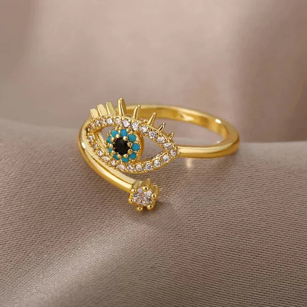 Bague Ajustable Oeil de Cristal avec Zircon en Or