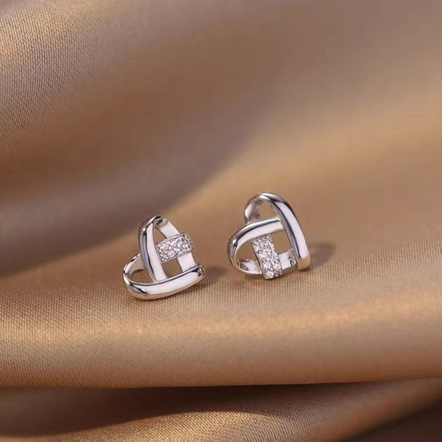 Boucles d'oreilles à Maillon Coeur avec Zirconia en Or