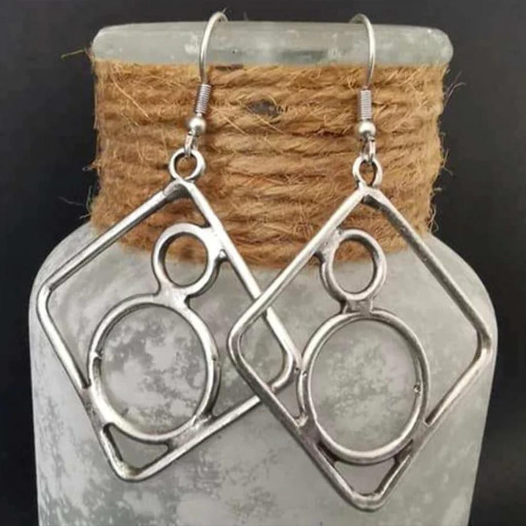 Boucles d'oreilles argent vintage ethnique creuse et carrée