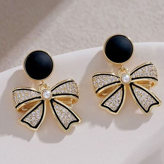 Boucles d'oreilles élégantes avec nœud noir et brillant