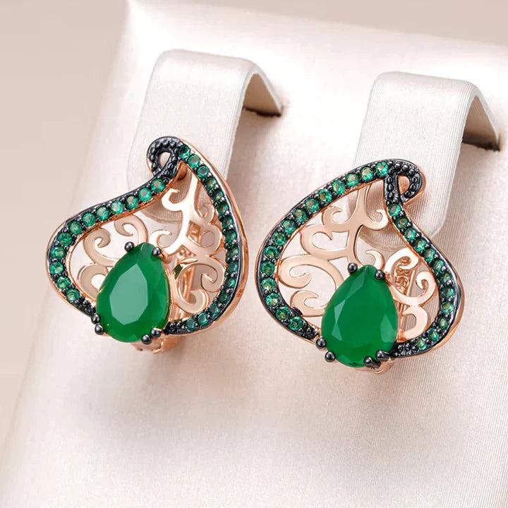 Boucles d'oreilles élégantes en cristaline verte et dorée