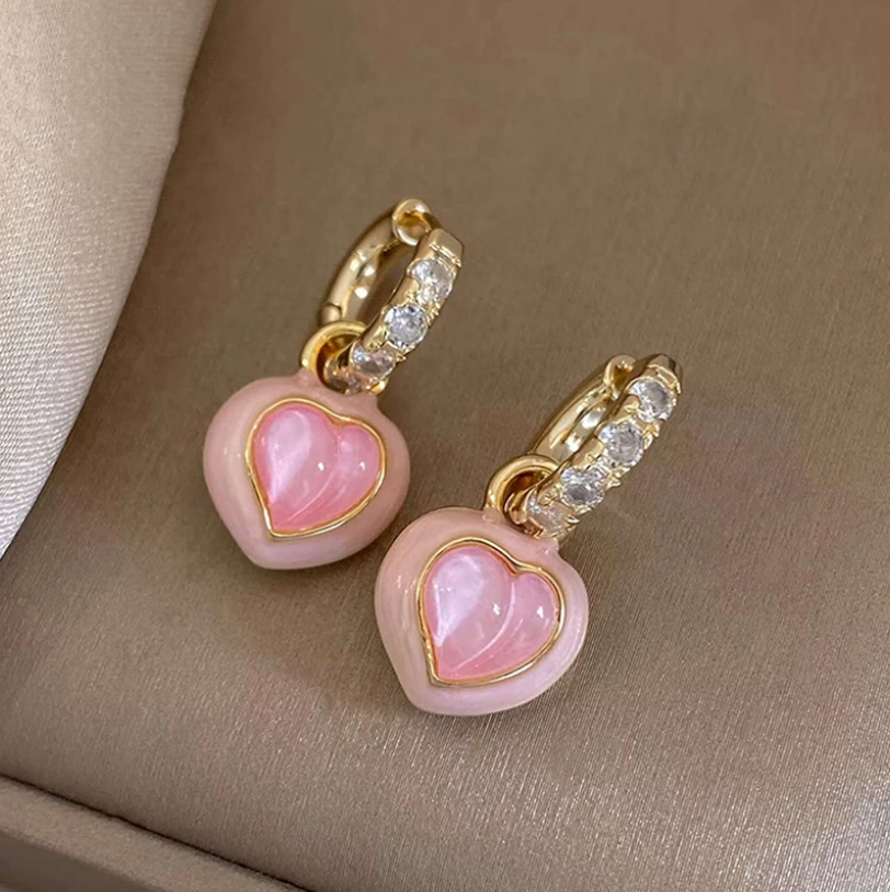 Boucles d'oreilles élégantes en forme de cœur rose