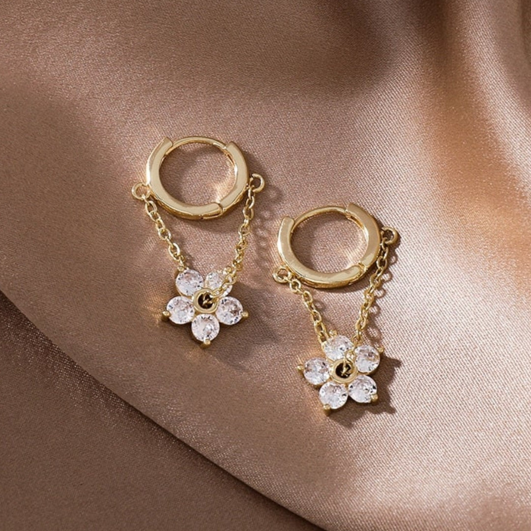 Boucles d'Oreilles Élégantes en Forme de Marguerite en Zirconium Doré