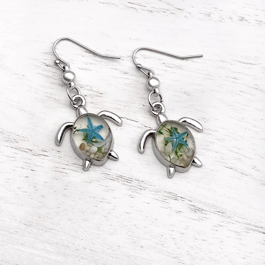 Boucles d'oreilles en cristal de tortue en argent sterling