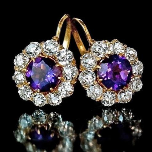 Boucles d'oreilles vintage en verre zirconia violet arrondi